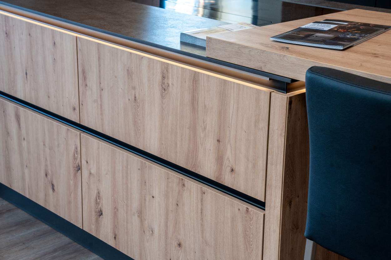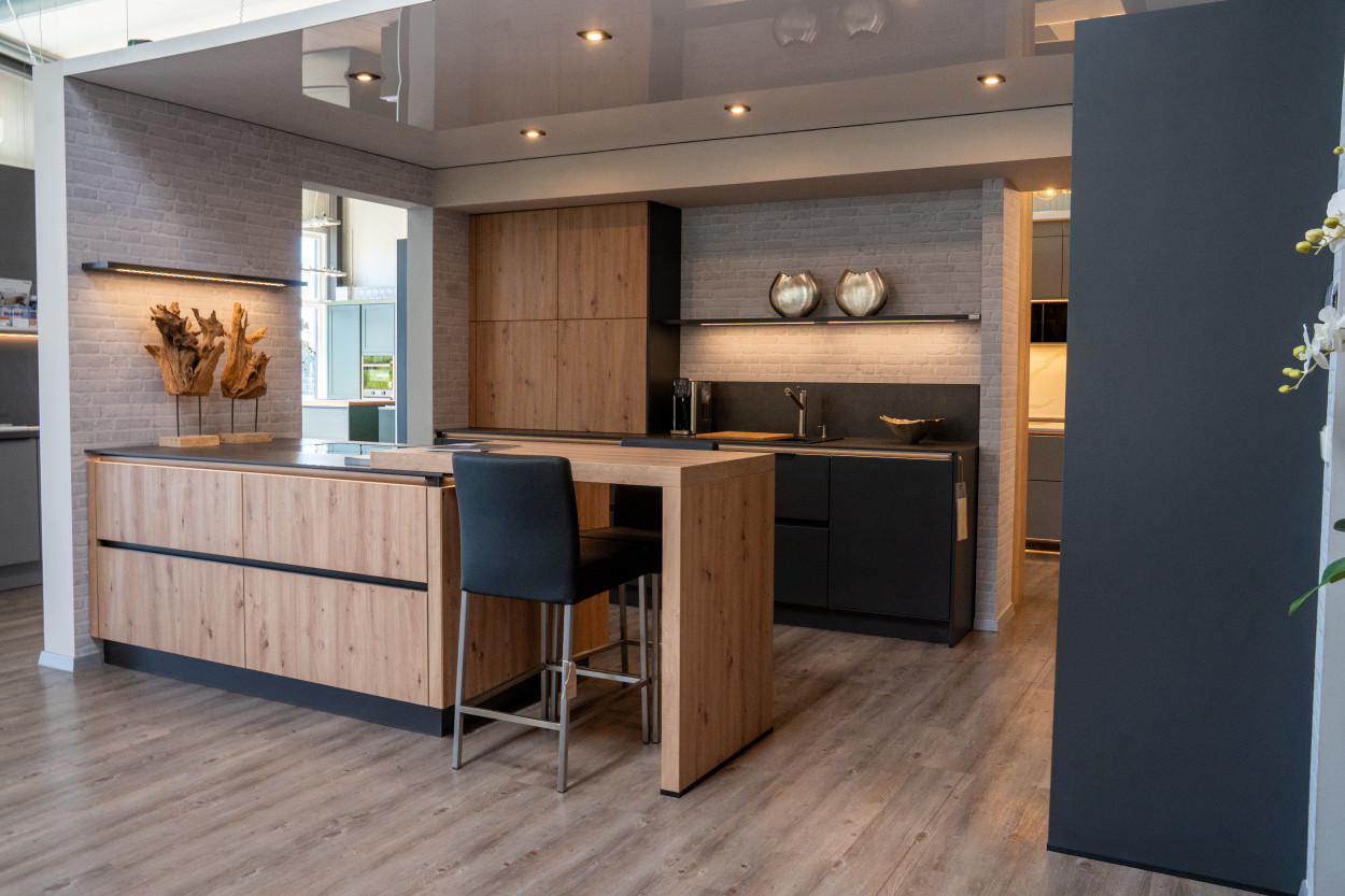 Bei diesem Ausstellungsstück handelt es sich um die neue next 125. Die Form des next 125-Systems basiert auf einem elementaren Küchenmöbel: dem Küchentisch. Eine Design-Küche reduziert auf das Wesentliche – funktional, geradlinig, edel, zeitlos und offen. Für das Küchensystem next 125 haben wir eine Vielzahl an Holz- und Farbvarianten für Sie in unserer Ausstellung bereitgestellt. Sie dürfen das neue Küchengefühl hautnah in unserer Ausstellung erleben.