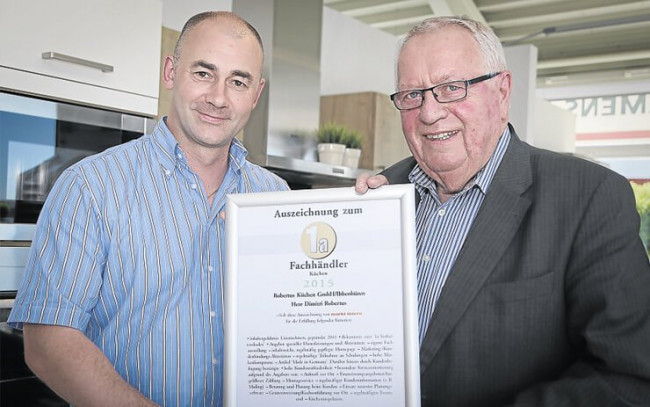Ibbenbüren. Diesmal hatte Ibbenbürens Bürgermeister Heinz Steingröver gleich zwei Gründe, dem Team der Firma Robertus Küchen zu gratulieren. Einmal zur erneuten Auszeichnung als „1a-Fachhändler“, die das Unternehmen nunmehr zum vierten Mal in Folge erhalten hat.